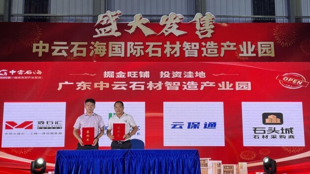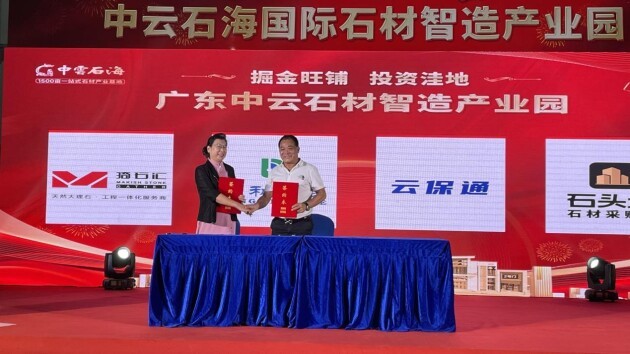 遥遥领先!非凡“智造”!石都倾力之大项目——中云石海闪耀世界,公司董事长关海棠与合营企业云浮市云保通贸、厦门市石头城集团现场签约……