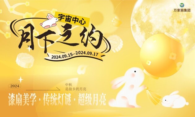 中天一轮满,秋野万里香。中秋佳节将至,万家丽邀你共赴一场月下之约,9月15日至9月17日,万家丽28F盘古福缘机场超级月亮空降,拍下与大月亮合影照片,带话题#在万家丽一起过中秋 分享小红书,将有机会获得文创礼品一份;“举头望明月,低头吃月饼”万人月饼品尝大会将在万家丽28F盛大启幕,诚邀您来品尝宇宙中心定制神秘月饼;“中秋猜灯谜,等你来闯关”,成功完成猜灯谜游戏挑战,即可将绝美的月亮灯打包带走;“花样手作,漆扇DIY”,以漆作画,以扇为纸,解锁东方色彩的韵味之美。赶紧“携家带口”到宇宙中心万家丽欢度一个充满仪式感的中秋节,感受中国人独有的节日浪漫!
