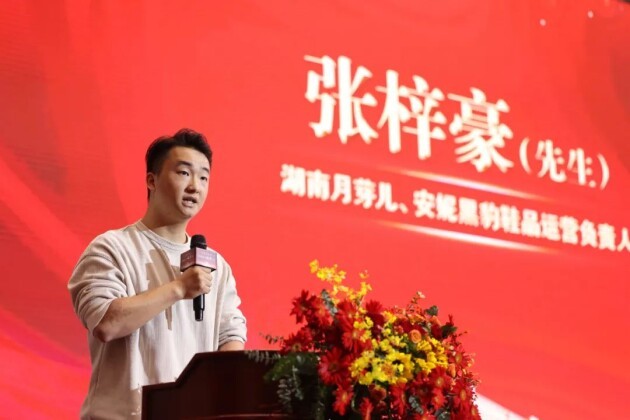 湖南月芽儿、安妮黑豹鞋品运营负责人张梓豪先生发言表示,月芽儿作为鞋类快时尚行业的头部品牌,从2019年至2024年,稳步达成了品牌销售额增长的目标,年度销售业绩一直稳居湖南榜首。回首2018年,我的父母怀揣着满腔热血和坚定的信念来到万家丽,开启了新的征程,如今,新生代的我也加入这个浩浩荡荡的大军,继续在万家丽发展,传承的重任落在了我的肩上,时代在发展,商业环境在不断变化,在竞争激烈如战场的商业世界里,传承只是第一步,发展和创新才是让我们在商圈中持续前行的动力。“真金不怕火炼,真理不怕争辩”万家丽商圈的火爆是全国人民有目共睹的,实践是检验真理的唯一标准,我们听从黄董指导,学习丹总经验,打造线上线下一体化策略,在2023年末和2024年中,分别花费重金打造了品类更时尚、更齐全、更优质的安妮黑豹和巴巴她湖南旗舰首店,引入零售模式新业态,通过优化供应链、提升服务质量,打造了线上线下融合的购物平台,增强了品牌与消费者之间的紧密联系,进一步提升了客户购物品质。我们是新时代的后浪,站在前人的肩膀上,展现我们蓬勃的生命力,我相信,带着我们无畏的勇气,未来将书写品牌更加辉煌的篇章。