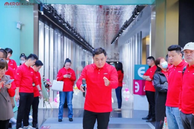随后,经销商伙伴移步至蒙娜丽莎绿创园参加美尔奇潮奢馆开馆仪式。作为蒙娜丽莎集团倾力打造的潮奢岩板品牌,美尔奇潮奢馆从场景化、前沿性、互动性三方面入手,以“潮奢、岩定”风格为主线,采用了不同于业内大多数品牌的设计语言和呈现方式,融入众多潮流元素和国外流行趋势,打造出一个符合现代都市精英审美的社交生活主场,为高定家居一体化带来更多选择与可能。