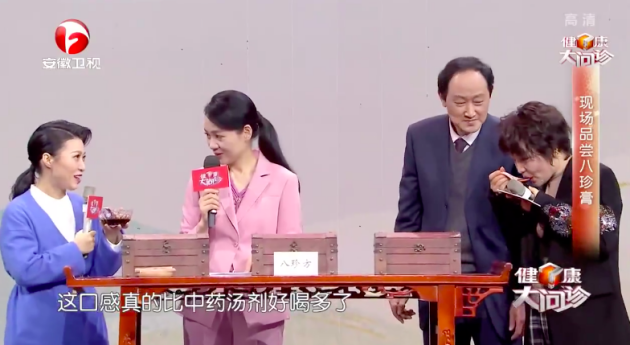在节目现场,嘉宾们一起品尝了八珍膏,这也彻底改变了她们对于传统中药的“苦”、“难吃”等的刻板印象。