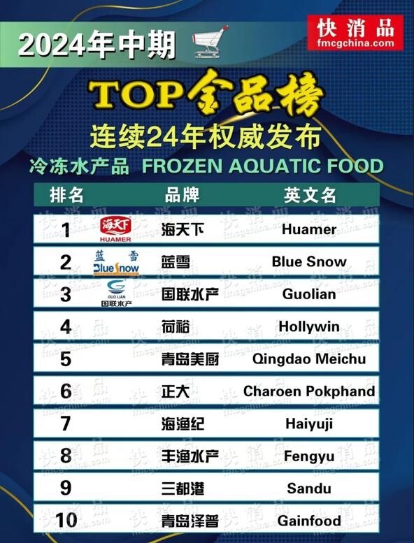 凭借卓越的产品质量和市场表现,国联水产成功登上了2024年线下TOP金品榜——冷冻水产品类TOP3。