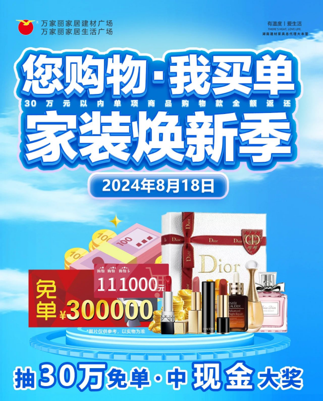 全场入驻品牌巅峰让利,只为给您带来最实惠的家装选择。活动期间,精心准备了家装礼包,免费领取,让您的装修之路更加顺畅;全场购物享高额返现,实惠看得见;更有幸运金蛋天天砸,内含精美礼品、纯金金币等惊喜好礼,等您来赢取!不仅如此,消费满额即可参与豪礼金币大转盘,名品美妆、全房家电等豪华奖品等您来解锁,让您的家居生活品质瞬间升级。万家丽家居建材广场与家居生活广场,作为您焕新家装的首选之地,8月18日当天解锁30万免单,万家丽承诺以最优的价格、最全的产品、最贴心的服务,为您打造梦想中的温馨家园。赶快行动吧,让您的家居梦想在这里照进现实!