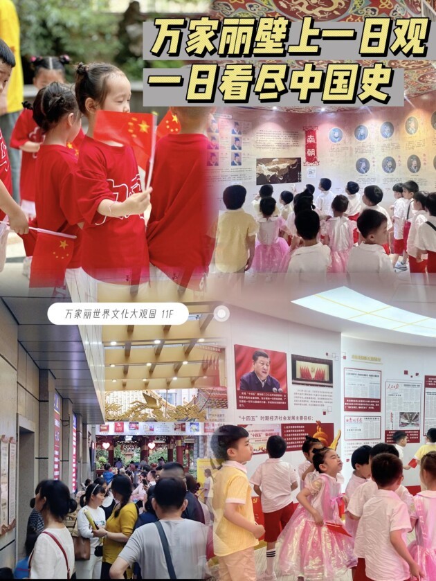 作为首个“湖南省党史教育基地”的万家丽世界文化大观园,汇聚中华上下五千年文化、历史大事件、历朝皇帝、疆域变迁、姓氏源流、人口变迁、东西方文化、世界名人蜡像、五大福地、长城内外等,其中,新时代民族复兴馆、湘籍中央委员馆、湘籍将帅馆、建党100周年馆、湘楚文化馆、秦汉雄风馆、杰出湘商馆、中华始祖馆、隋唐盛世馆、元明清故宫馆、世界名人蜡像馆均免费对外开放!是游客们体验一日,胜读十年书的绝佳之地!