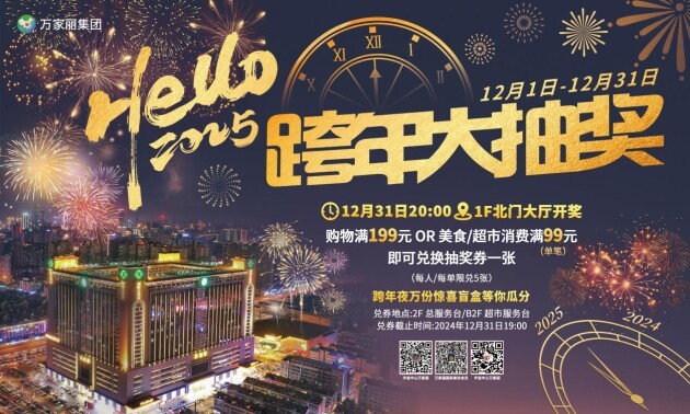 跨年夜相遇宇宙中心万家丽!即日起至12月31日,在万家丽国际购物广场全场单笔消费满199元,美食类单笔消费满99元,万家丽生活超市消费满99元,均有机会赢取黄金饰品、品牌手机、超市购物卡、豪华客房券、大牌美食券等重磅福利。12月31日活动当天,现场还会有三轮线上红包雨大派送……十二月的万家丽活动丰富多彩,就像万花筒般让人爱不释手!