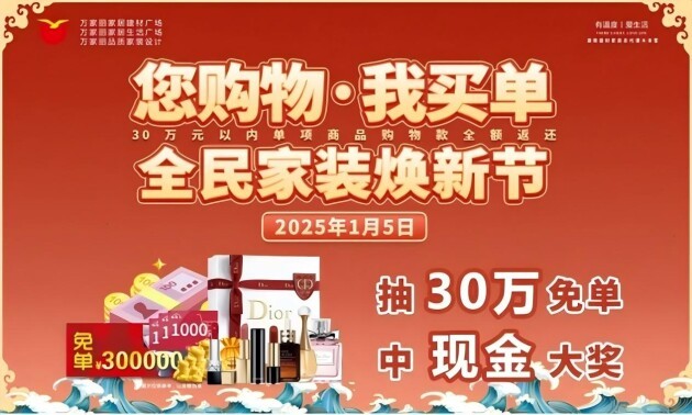 大而专、专而全、全而精,全球最大地铁家居建材装饰城——万家丽家居建材广场、家居生活广场,作为湖南建材家具总代理大本营,厂价直供,本土市场,连续22年单店销售全国第一!即日起至2025年1月5日,“您购物、我买单”活动正在火热进行中,红包礼品免费领、全场返现人人有、一万金蛋天天砸、超值券包限量抢 ,政企双补、银行优惠、设计满减、市场返现等海量惊喜重磅来袭!Iphone16、纯金金币、名品高化、全房家电等您来解锁!更有30万免单巨奖倾情回馈新老客户;还有更多家装惊喜、更多大牌优惠,尽在宇宙中心万家丽!