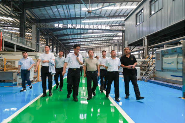 2023年6月5日,江西省高安市人大常委会党组副书记、副主任艾显峰率领高安市政府有关部门及陶瓷协会部分陶瓷企业代表一行十余人,中国建筑卫生陶瓷协会副会长徐煕武陪同,到蒙娜丽莎集团总部参观考察,了解蒙娜丽莎绿色化、数字化、智能化转型升级的成果和经验,探索高安市陶瓷产业转型升级“新路子”。