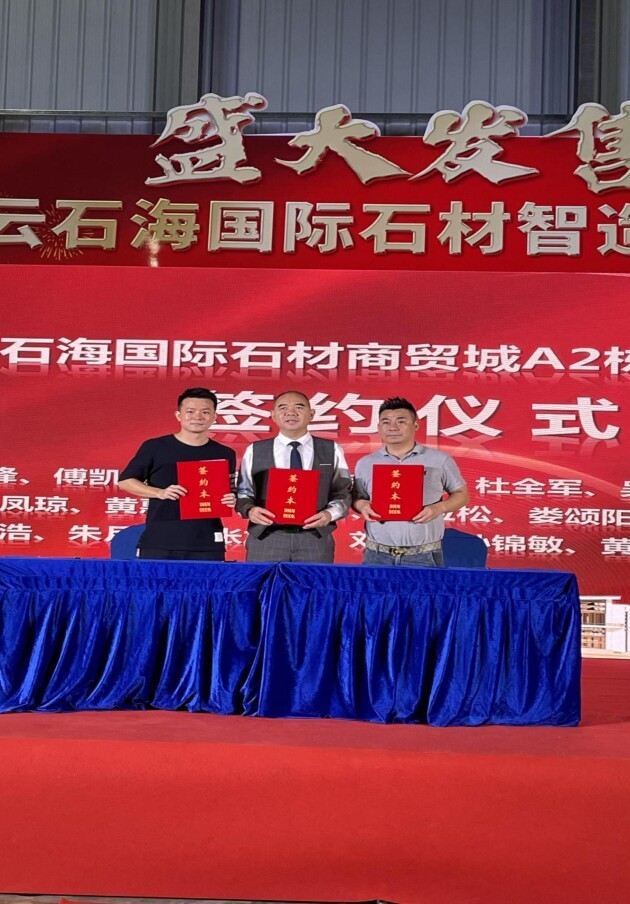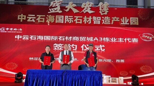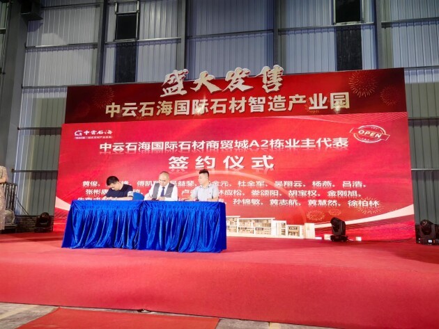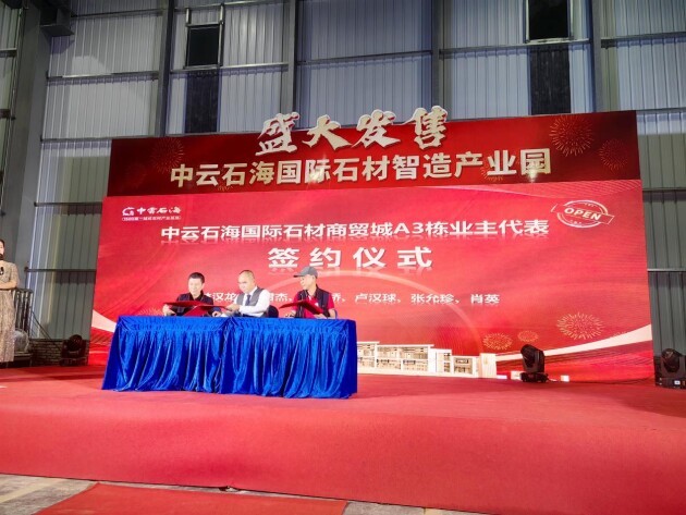 中云石海副董事长冯文钦,现场与A2幢商铺业主代表签约。