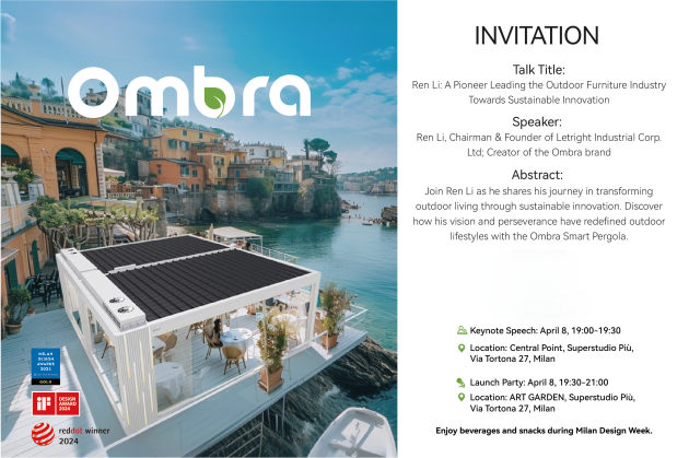 米兰设计周以高门槛著称,能在此亮相的品牌无不代表着行业顶尖水准。Ombra不仅强势入场,更以卓越的可持续理念与技术含量,超越了传统高端家居品牌,成为户外领域的全新标杆。其创新性不仅体现在设计突破,更是对全球绿色未来的坚定承诺。